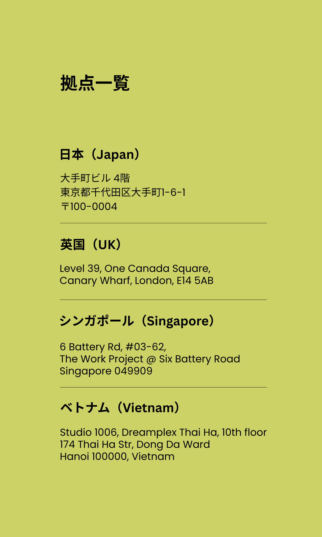 米国・英国・シンガポール・日本の拠点を基盤に、業界横断の知見をお客様の成功に活かします。